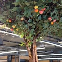 Drzewo jabłoni z owocami z koroną na suficie. To drzewo ma 120cm wysokości i 260cm szerokości. Zrobimy takie drzewo w każdym rozmiarze. Może być w innym kolorze, z innymi kwiatami, liściaste, iglaste itp.