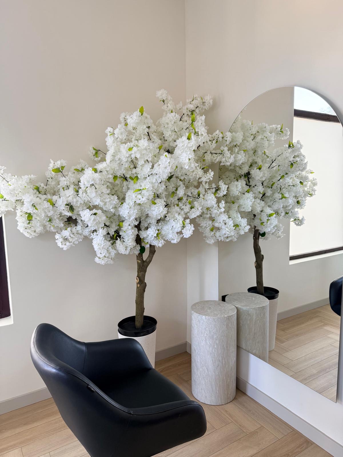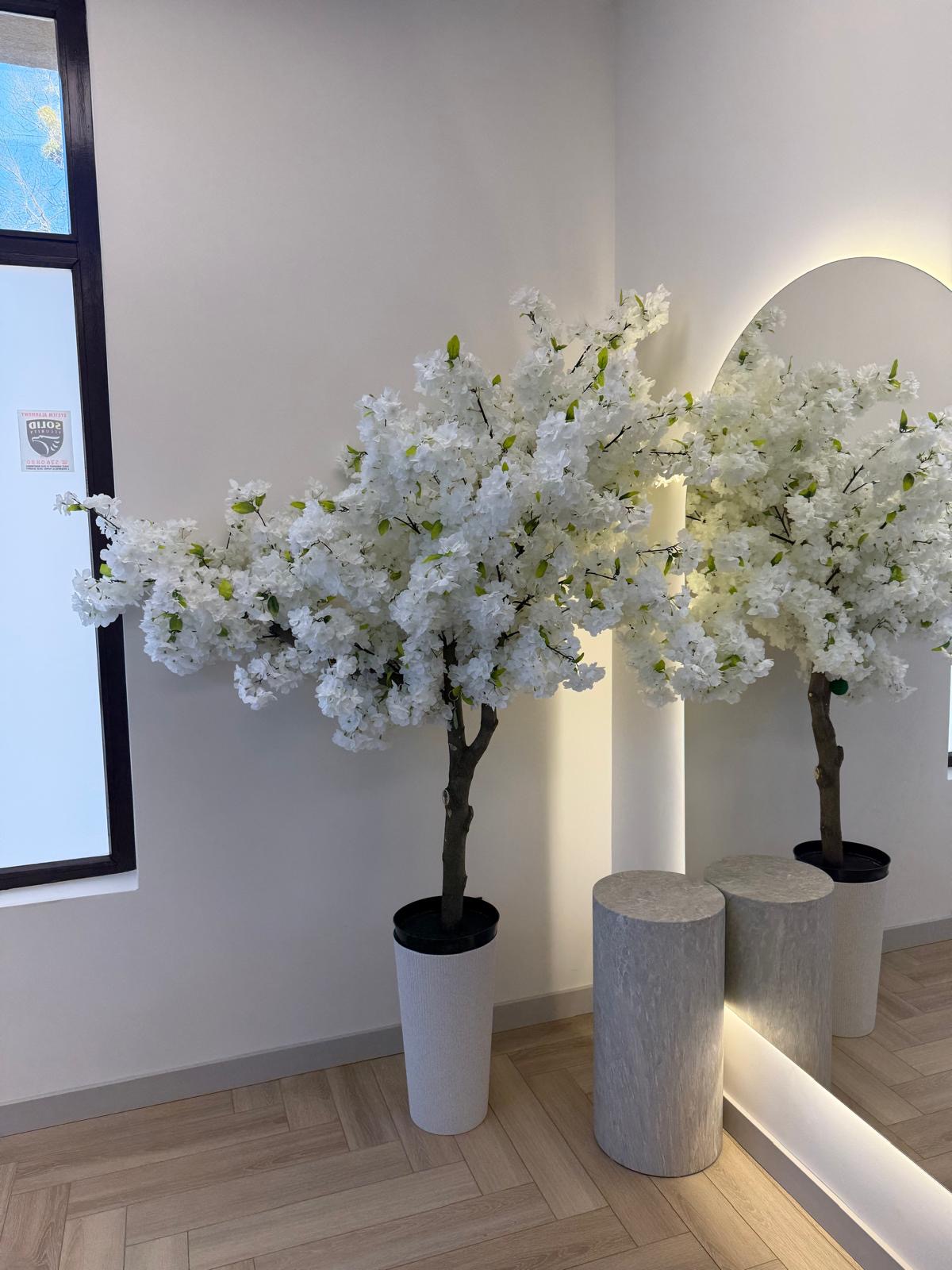 Drzewo kwitnącej wiśni 150cm w kolorze białym na naturalnym pniu