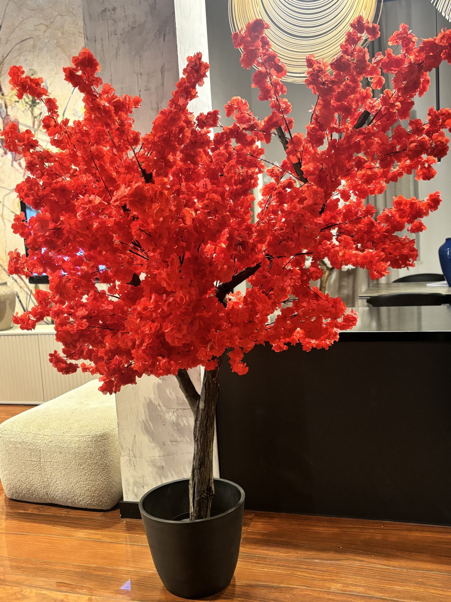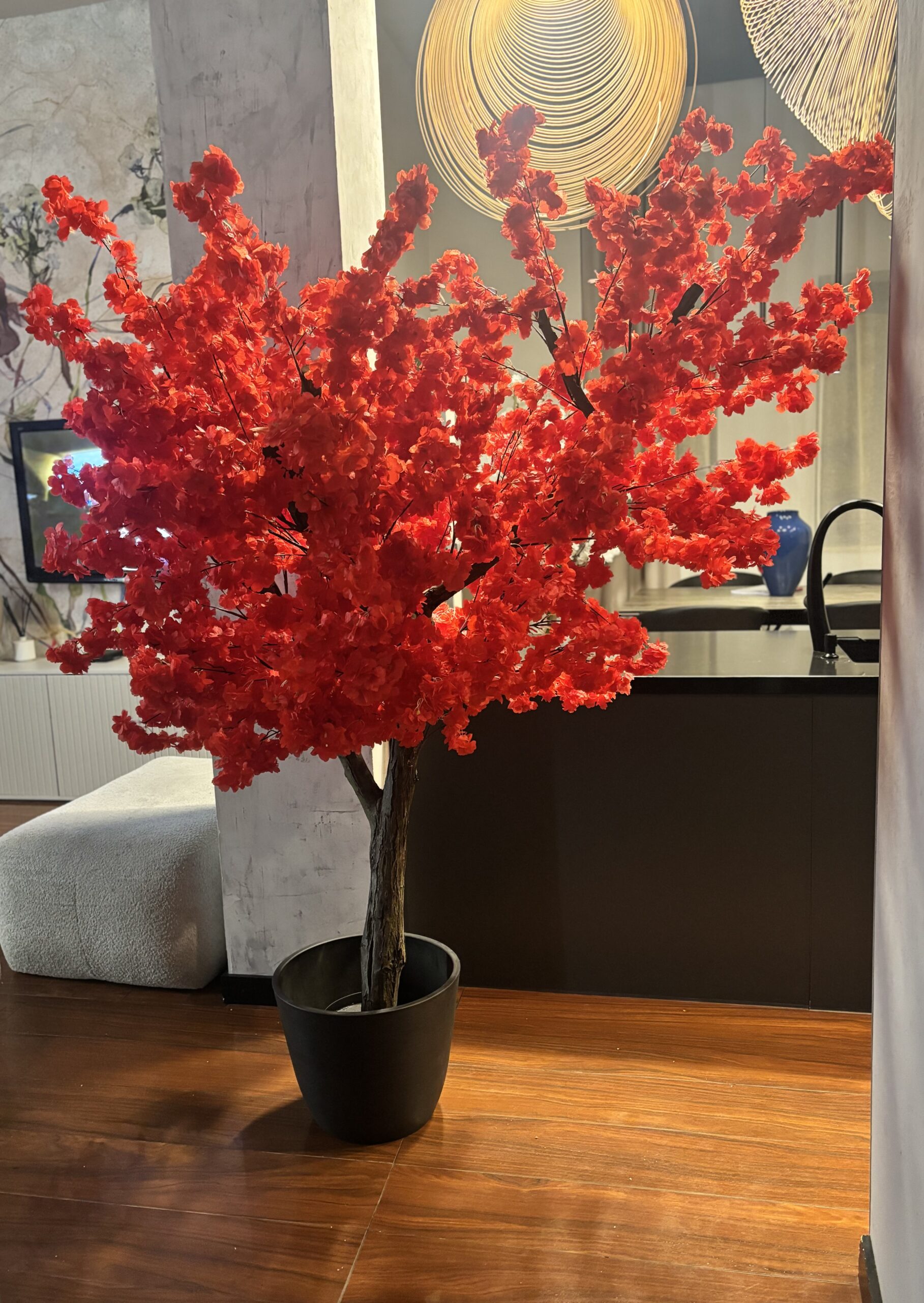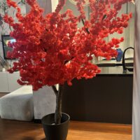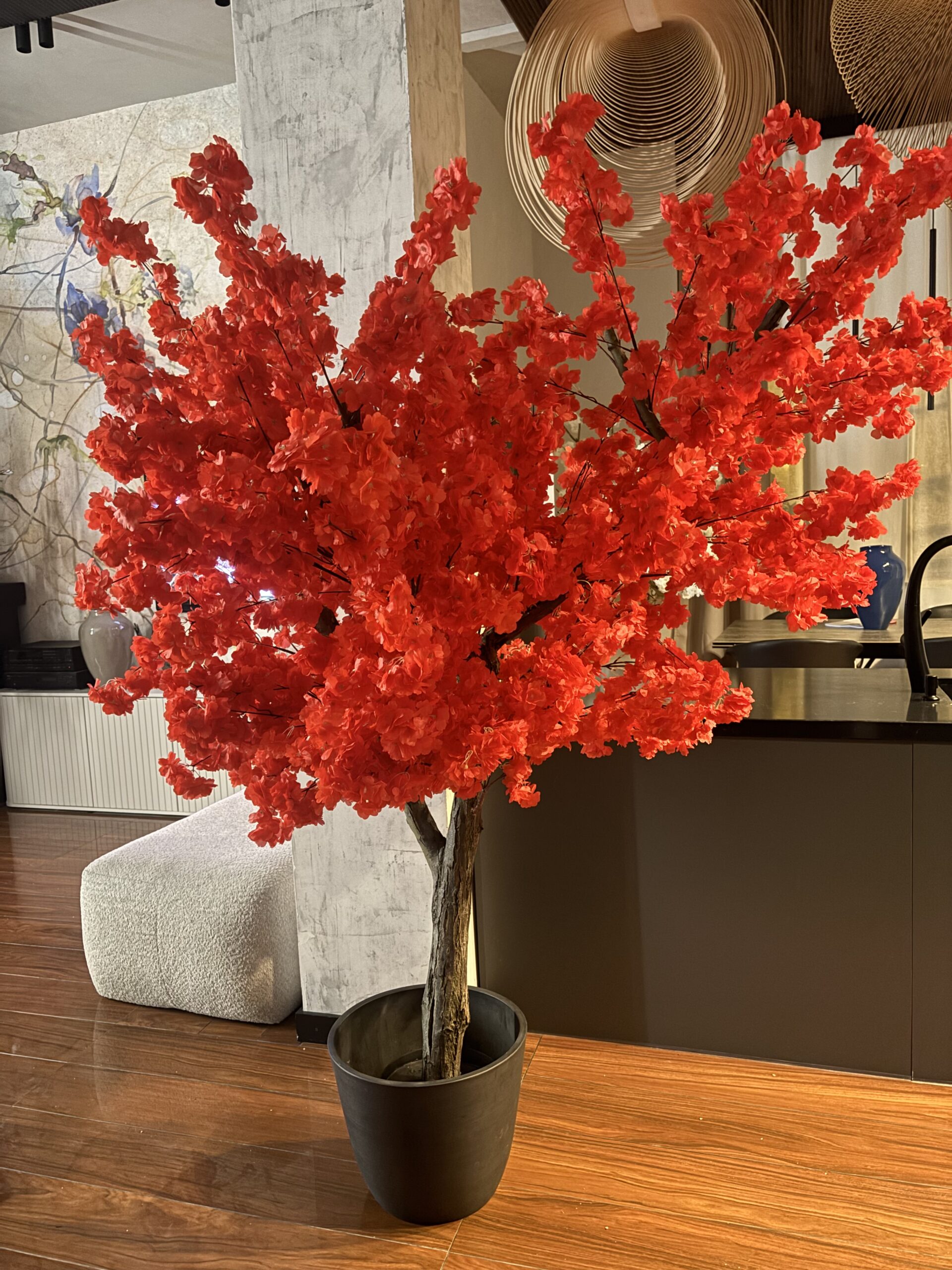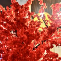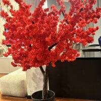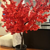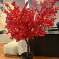 Drzewo wiśni 180cm z czerwonymi kwiatami. Przepiękny kolor liści. Drzewo idealne do baru sushi, restauracji tajskiej, wietnamskiej, japońskiej.
