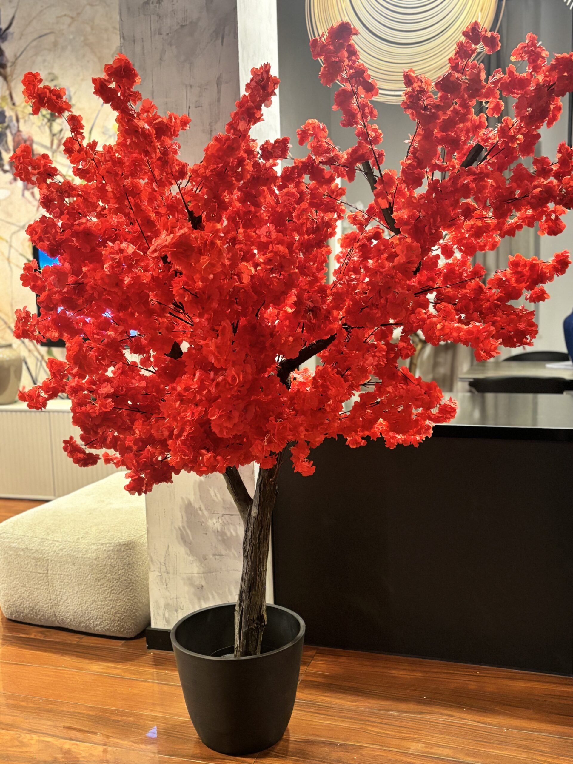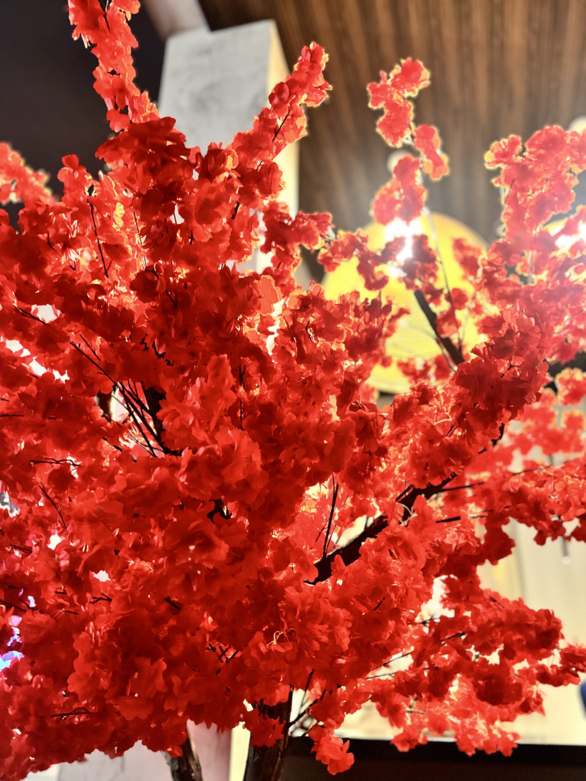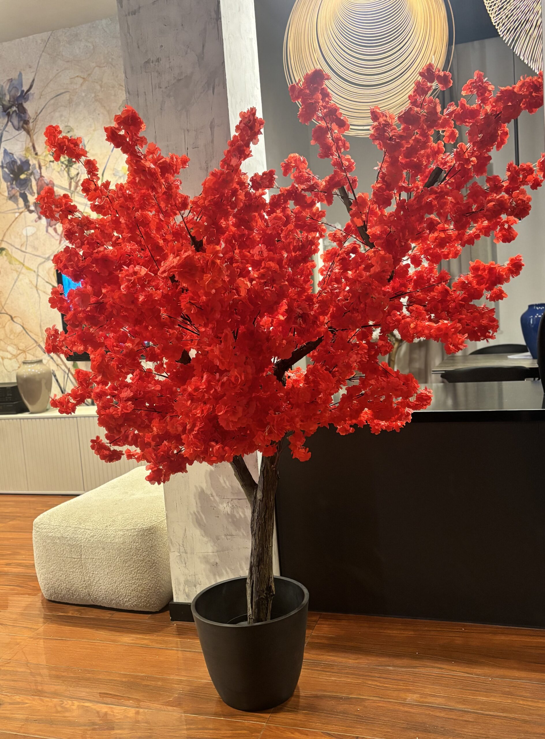 Drzewo wiśni 180cm z czerwonymi kwiatami. Przepiękny kolor liści. Drzewo idealne do baru sushi, restauracji tajskiej, wietnamskiej, japońskiej.