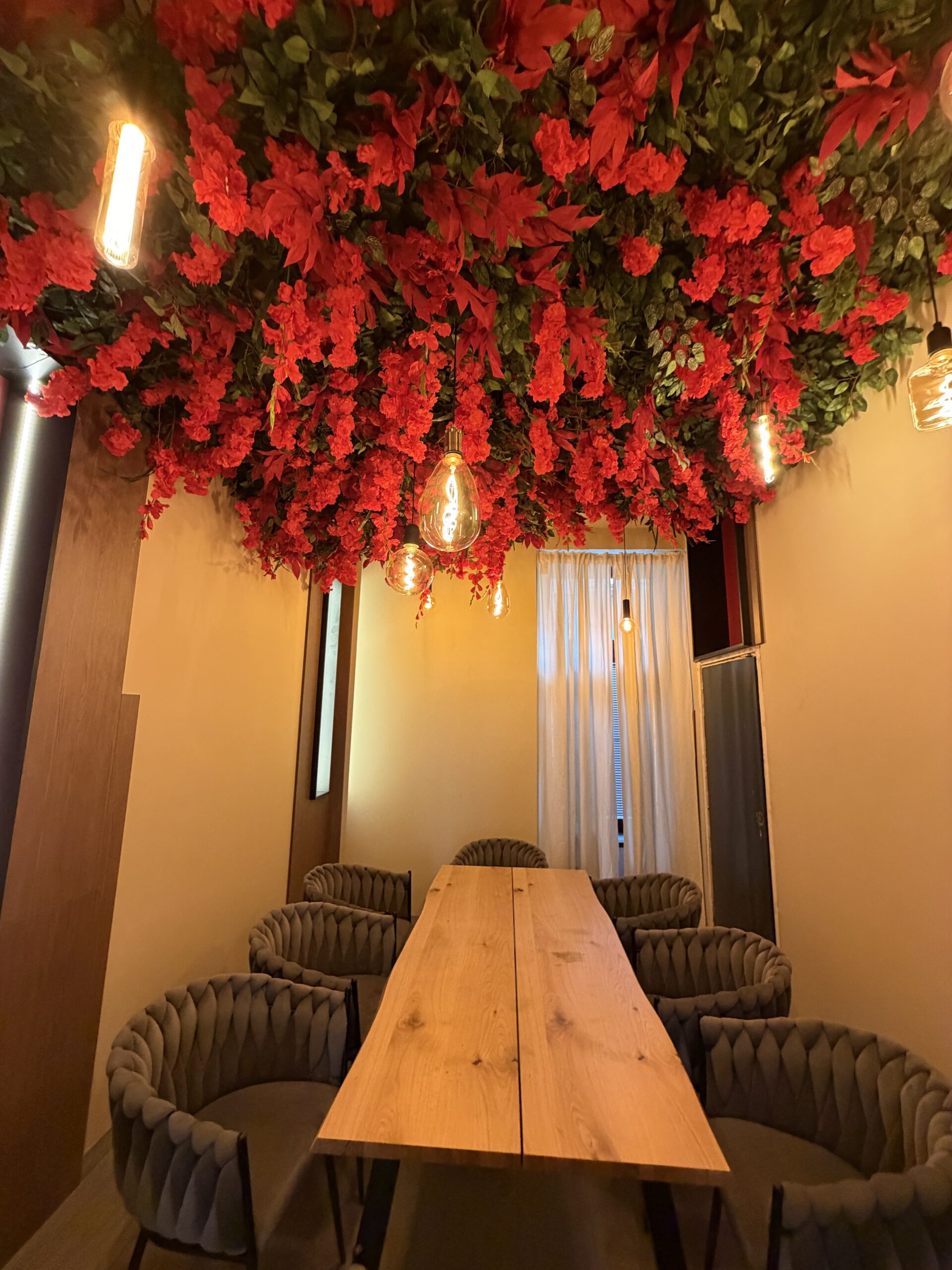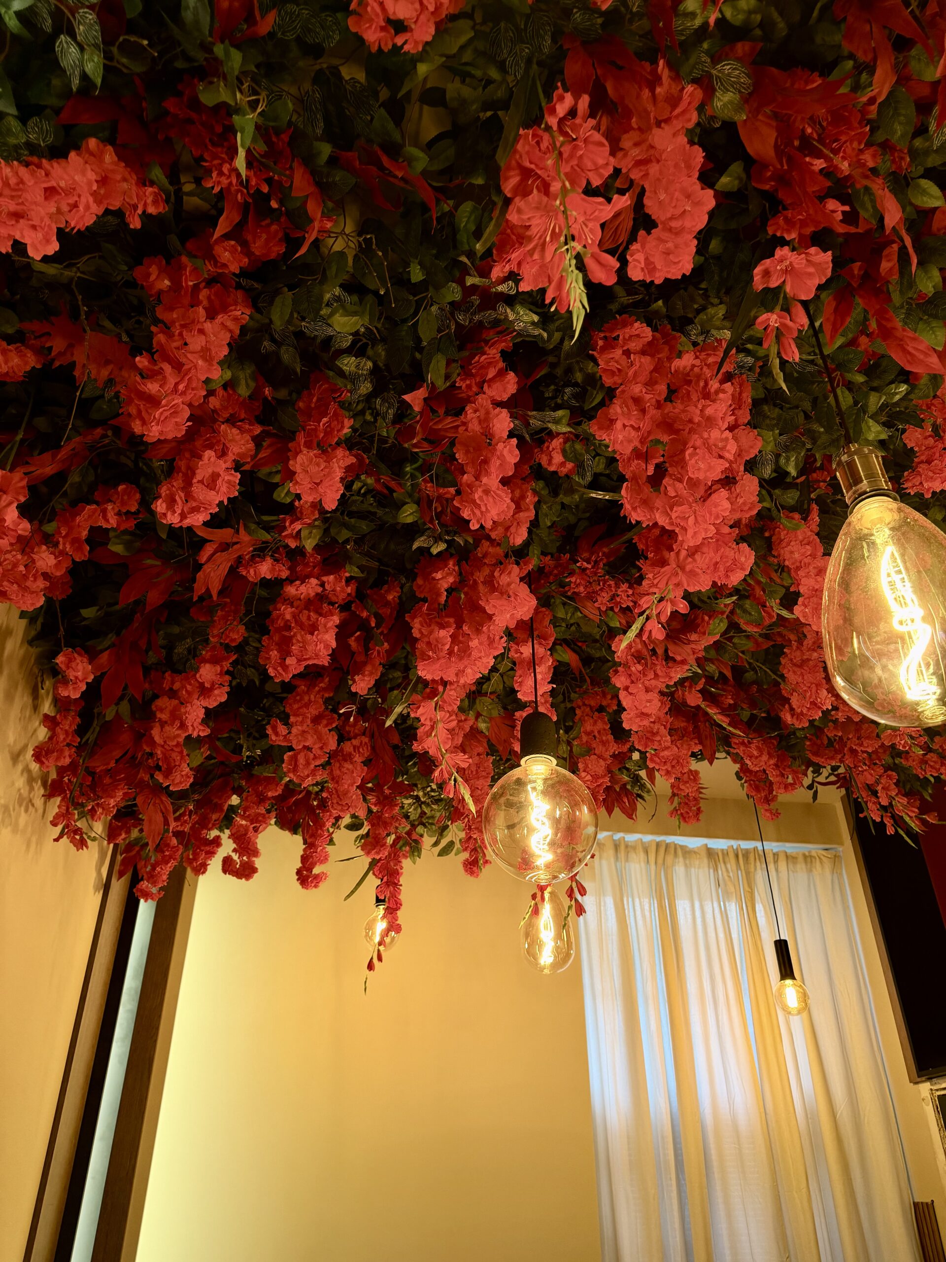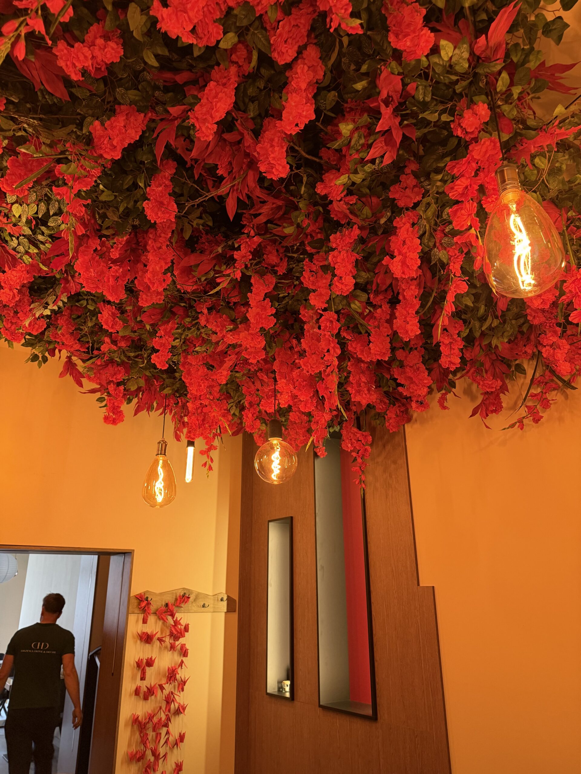 Instalacja z czerwonych kwiatów na sufit, ścianę 10m2