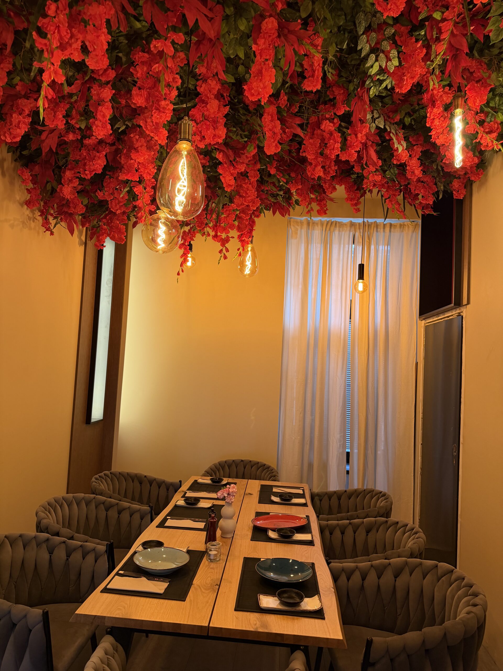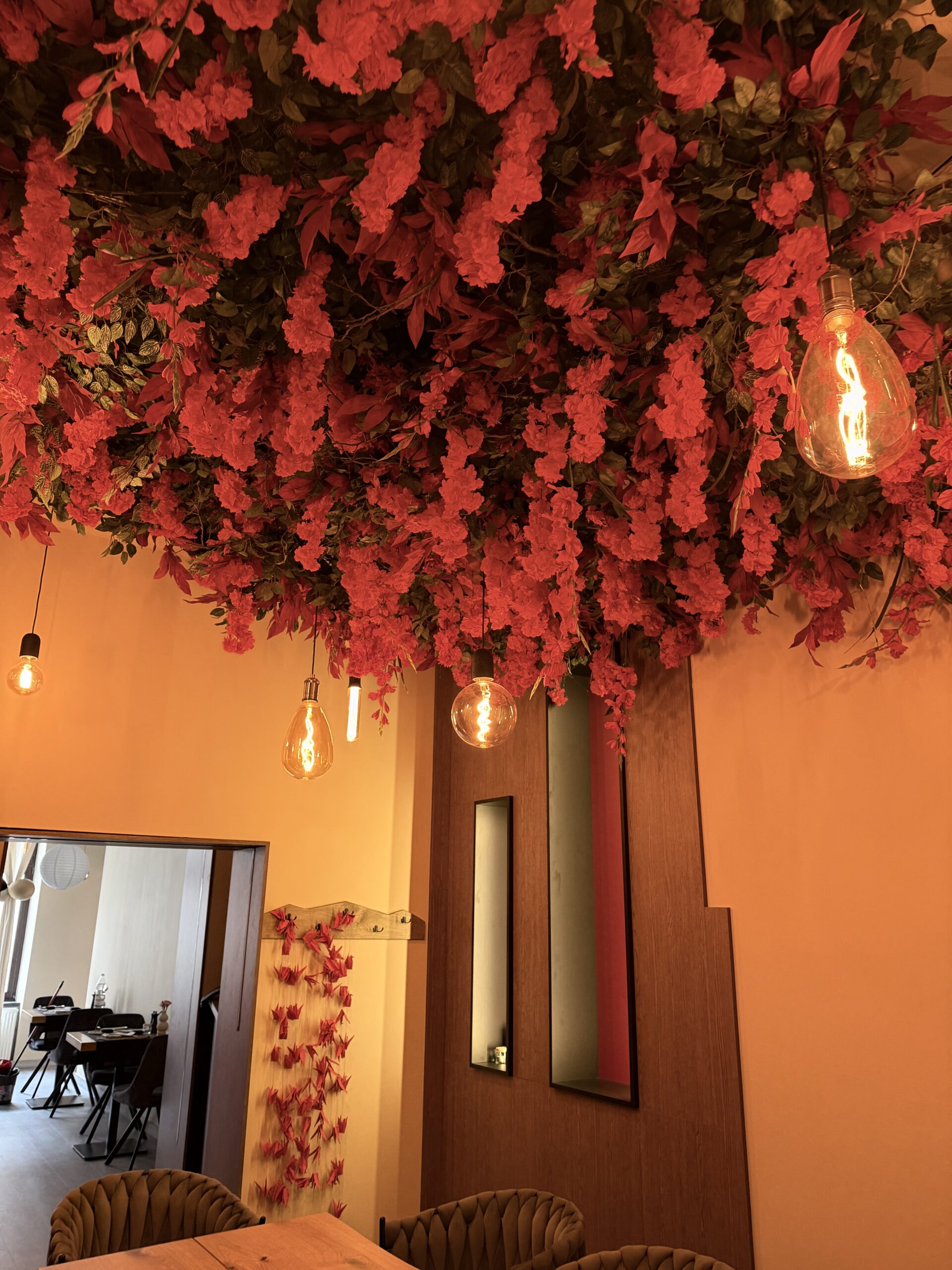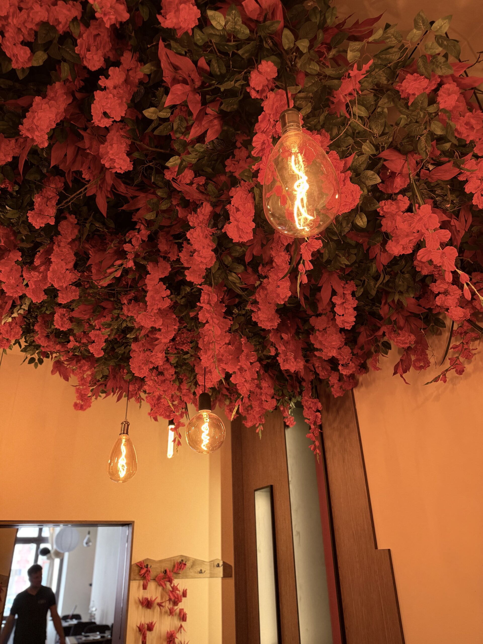 Instalacja z czerwonych kwiatów na sufit, ścianę 10m2