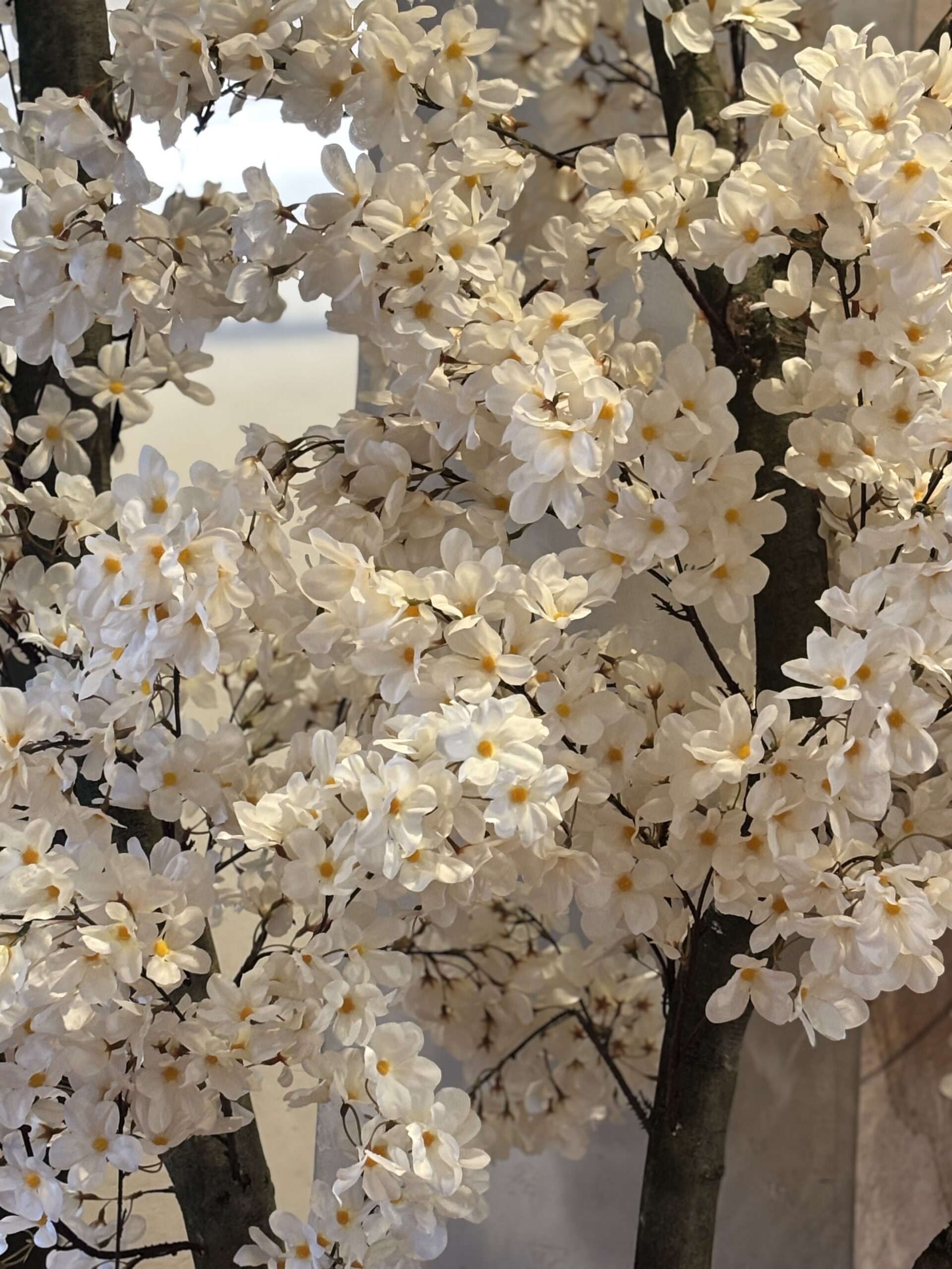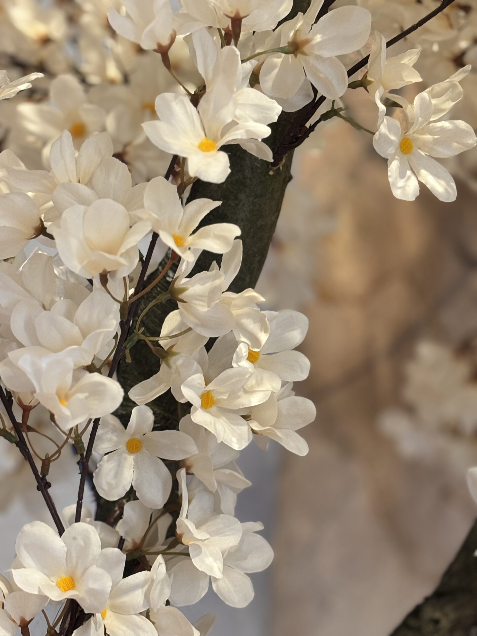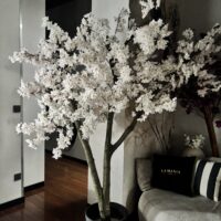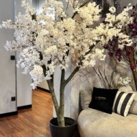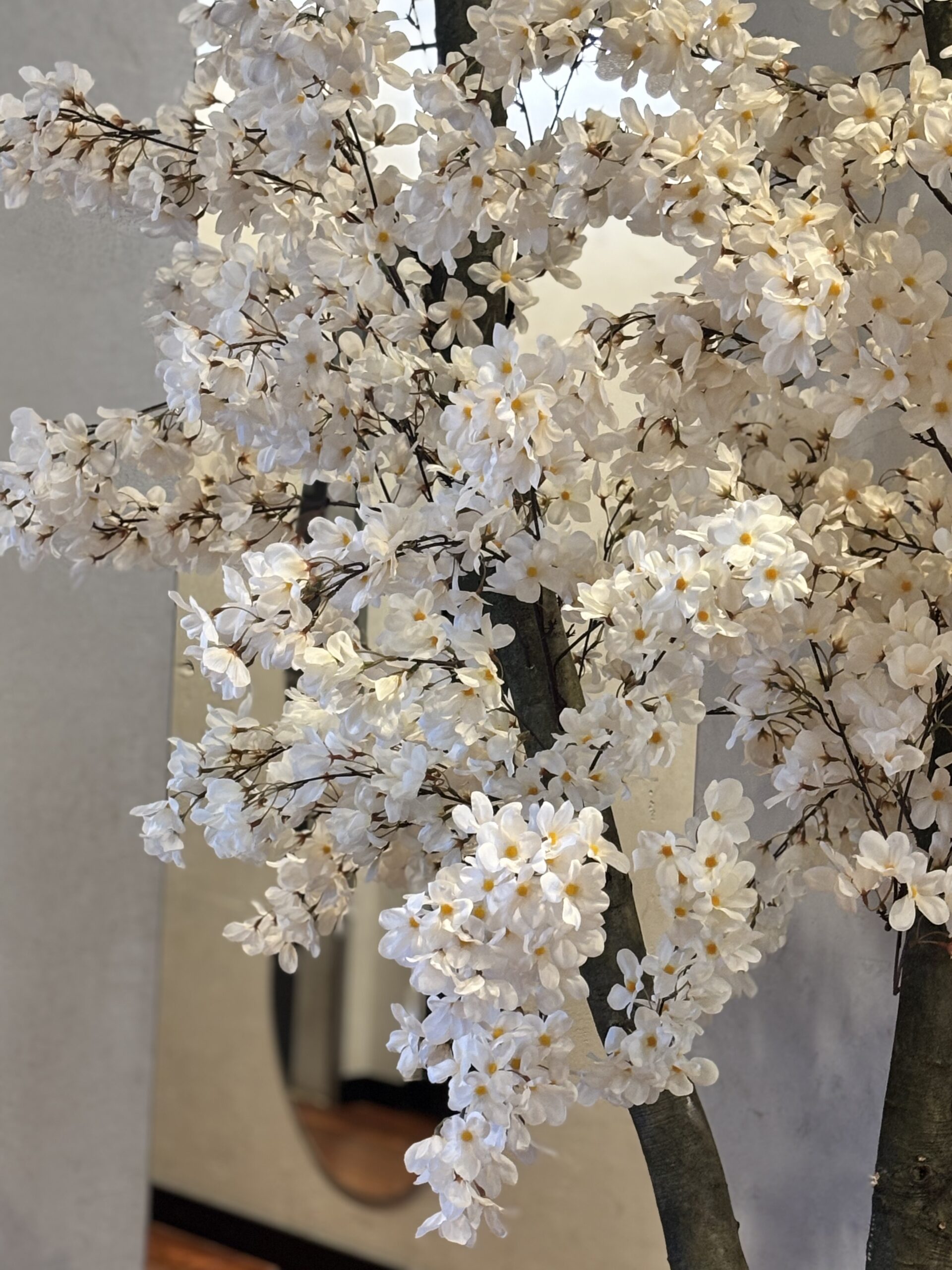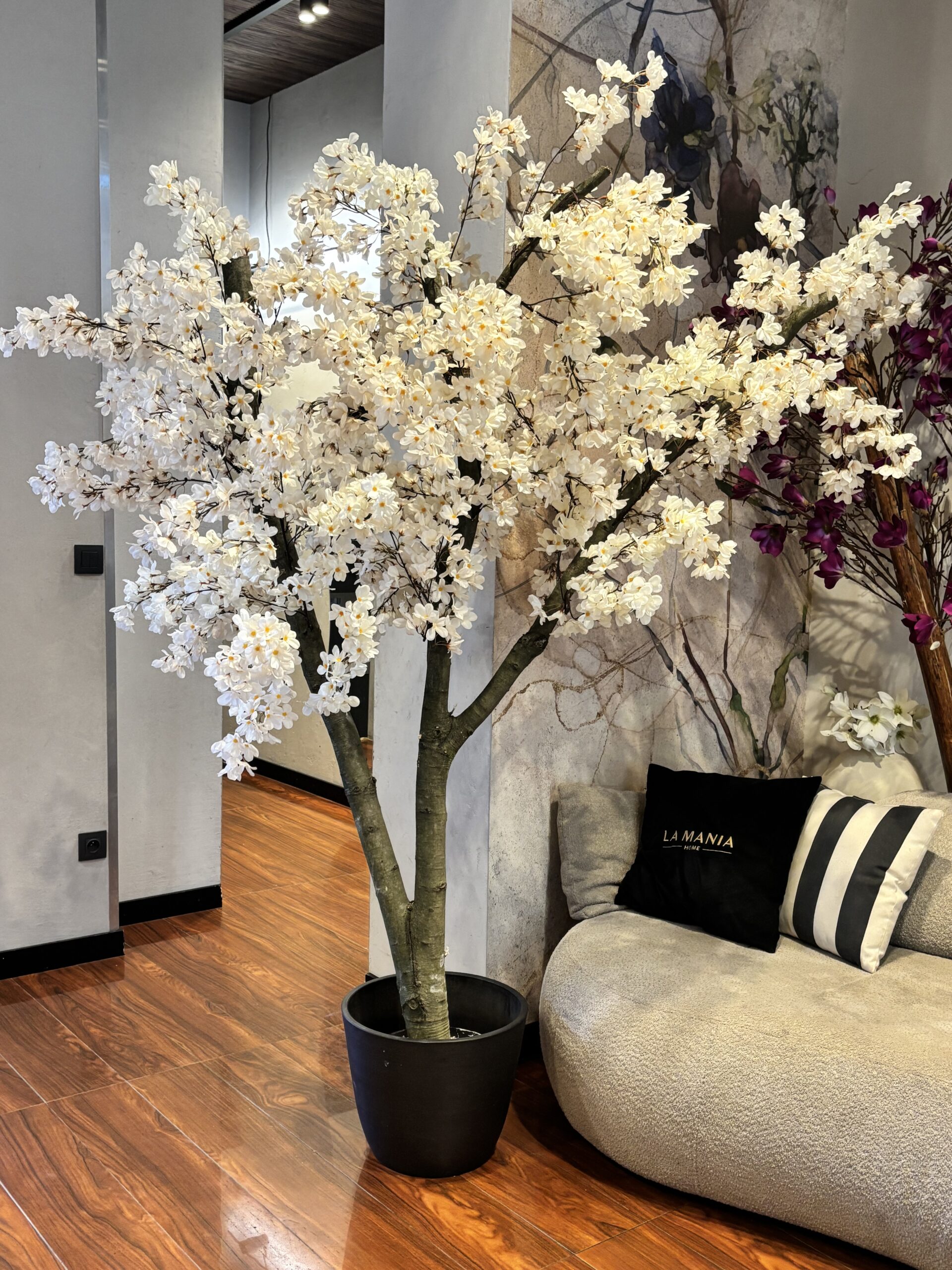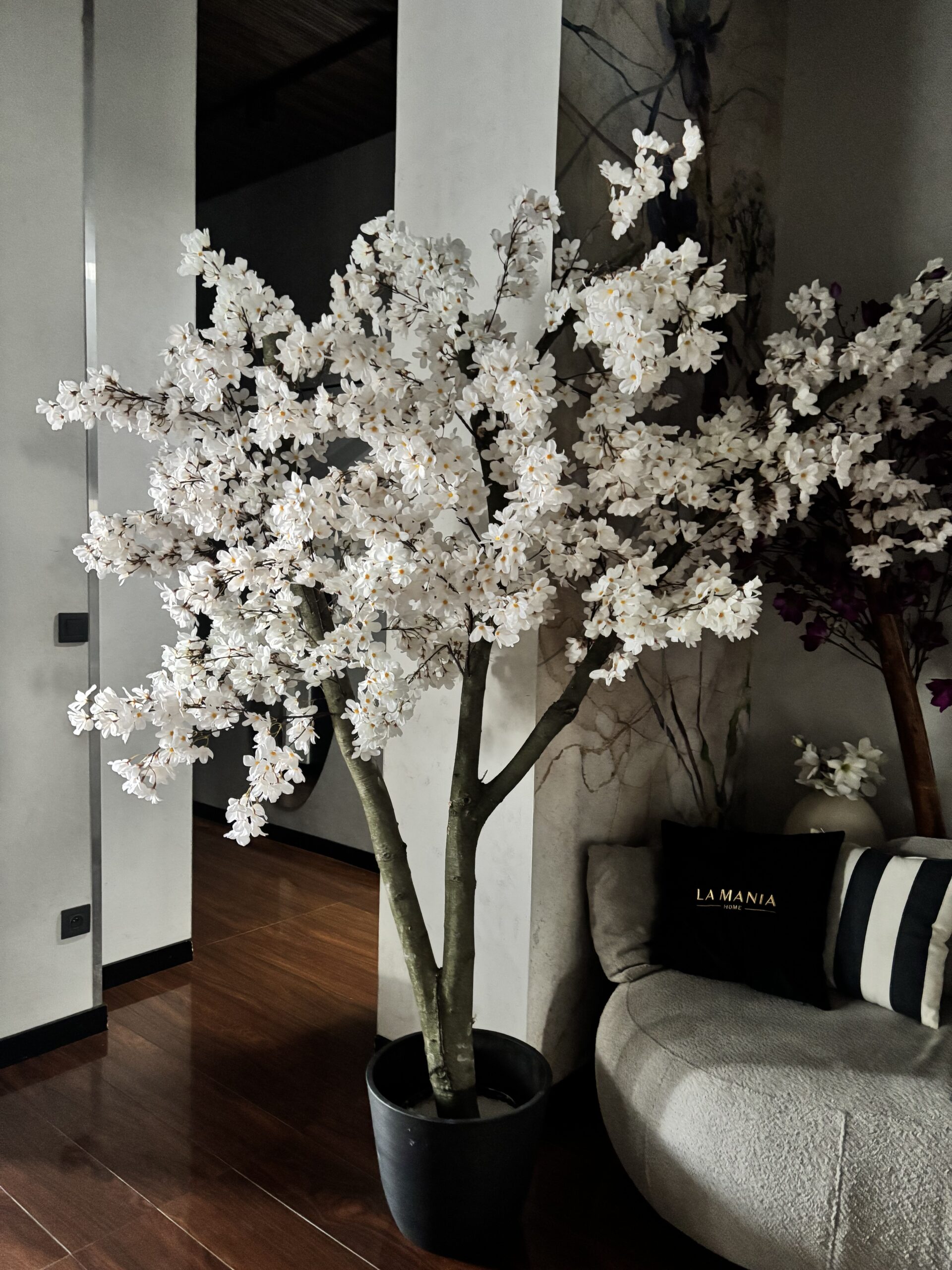 Kwitnące białymi kwiatami drzewo 240cm na naturalnym pniu.