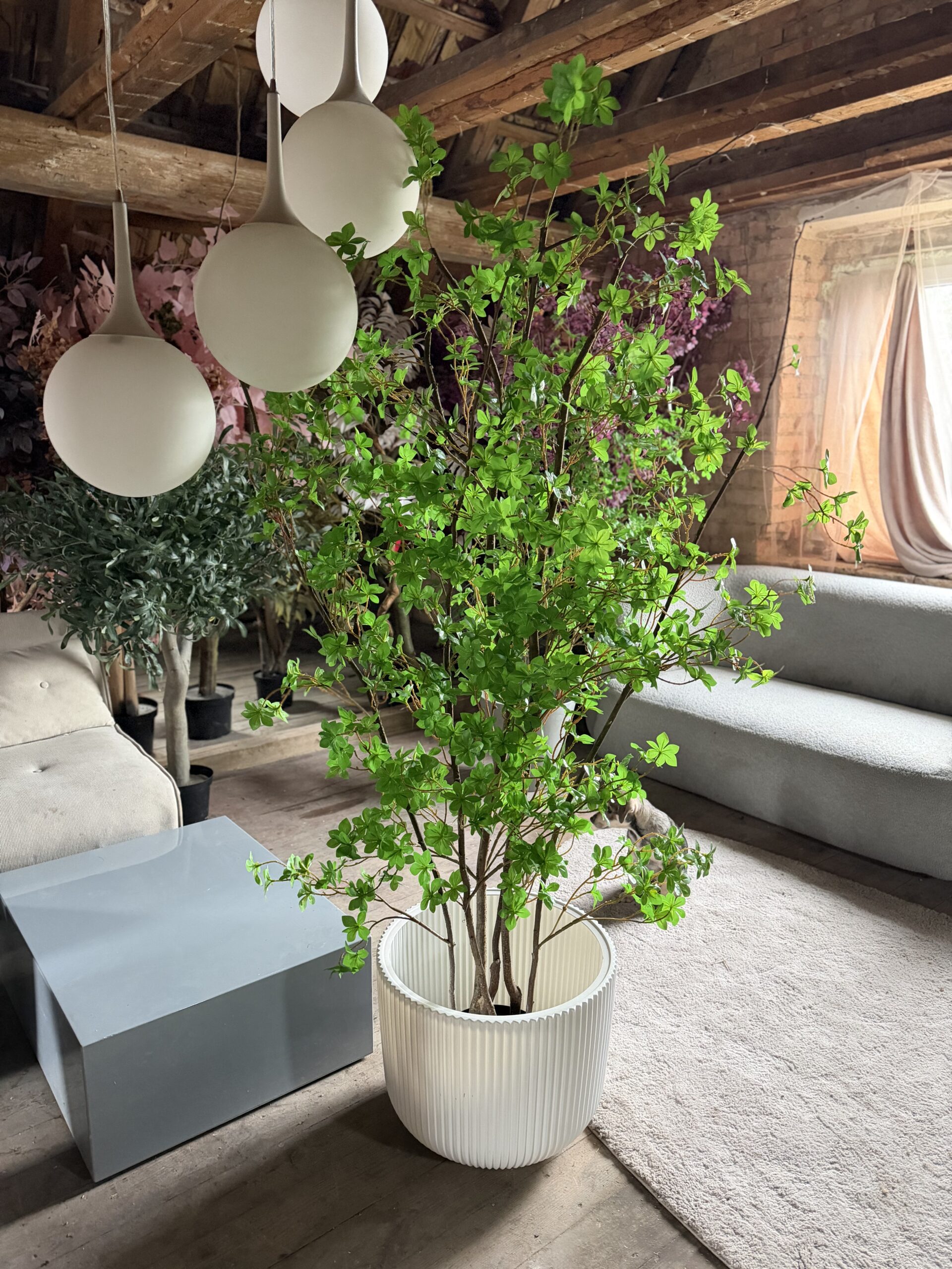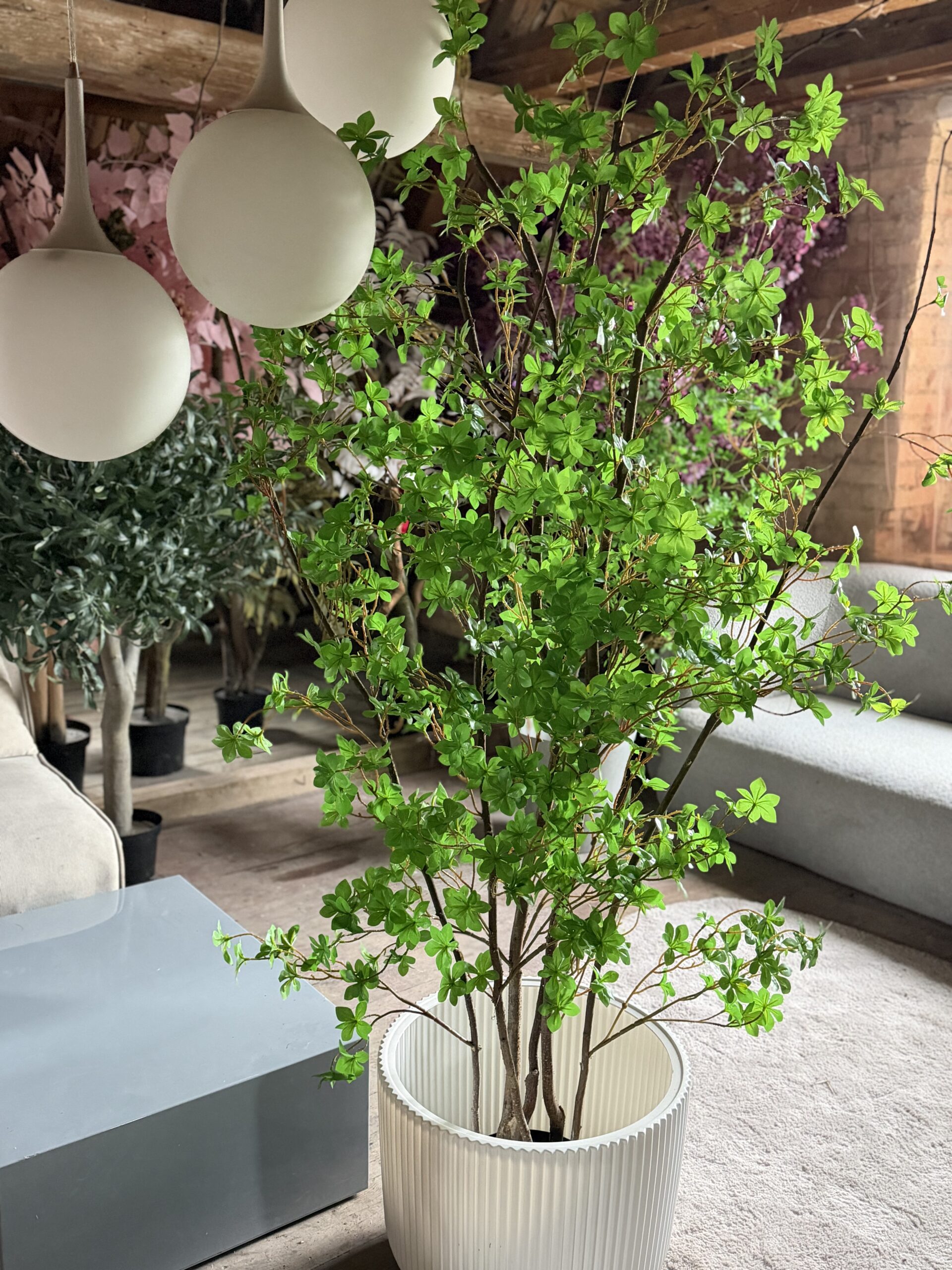 Małe i gęste drzewo liściaste 180cm na naturalnych pniach.