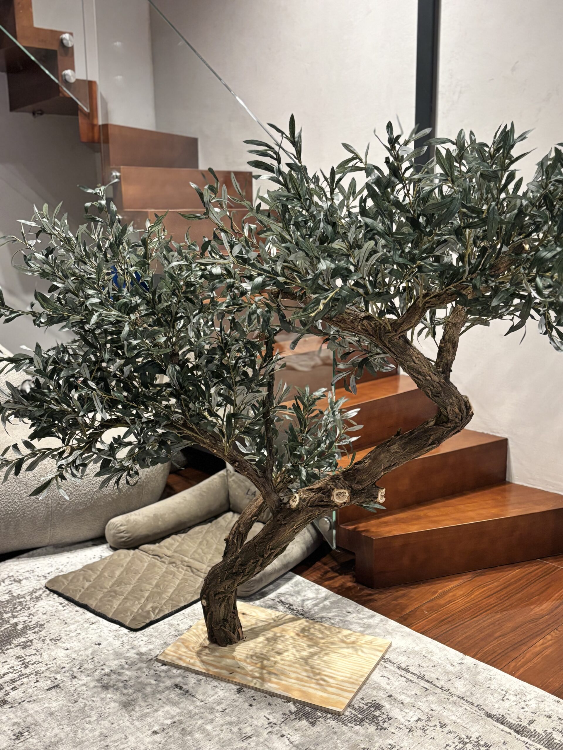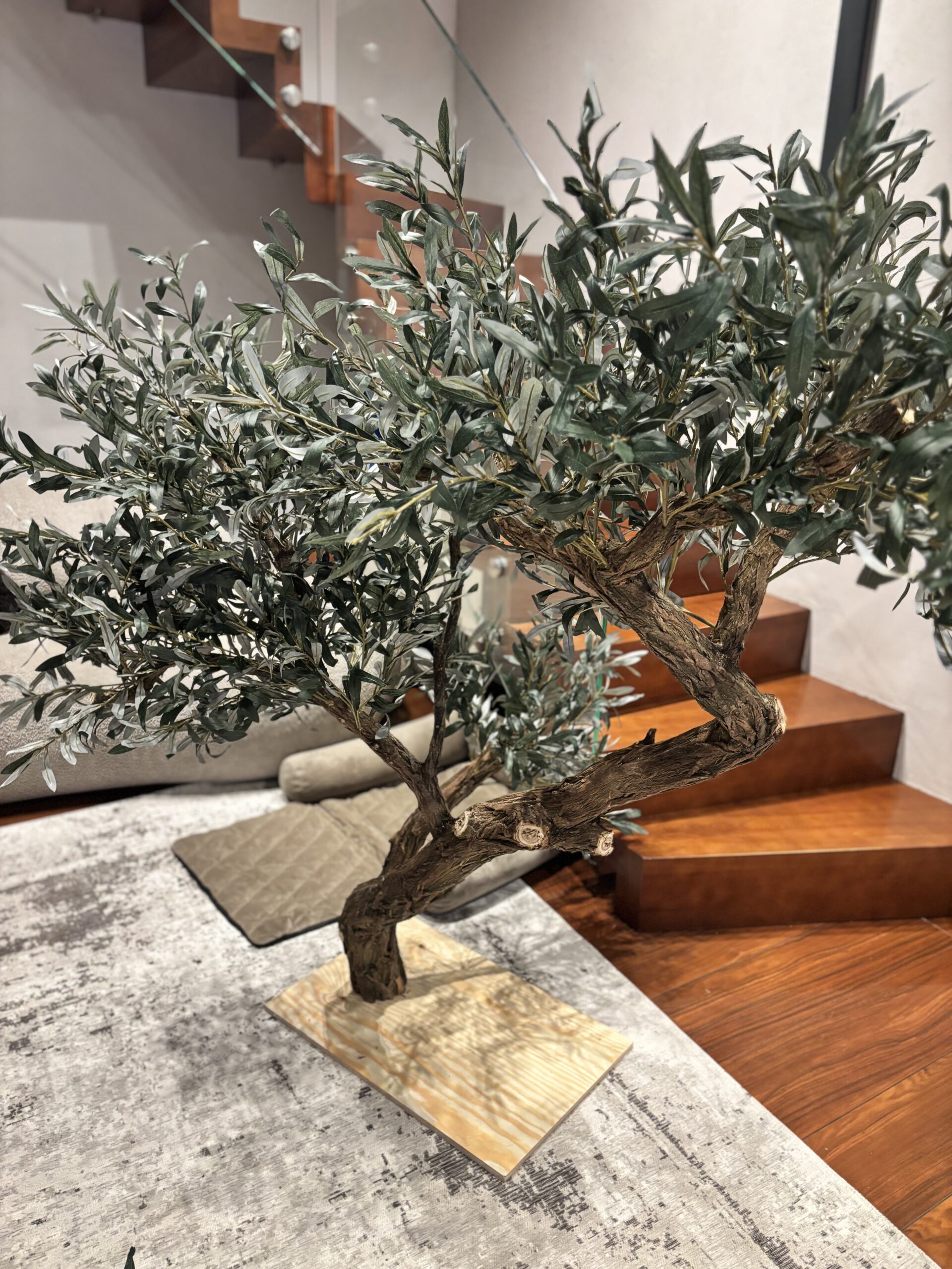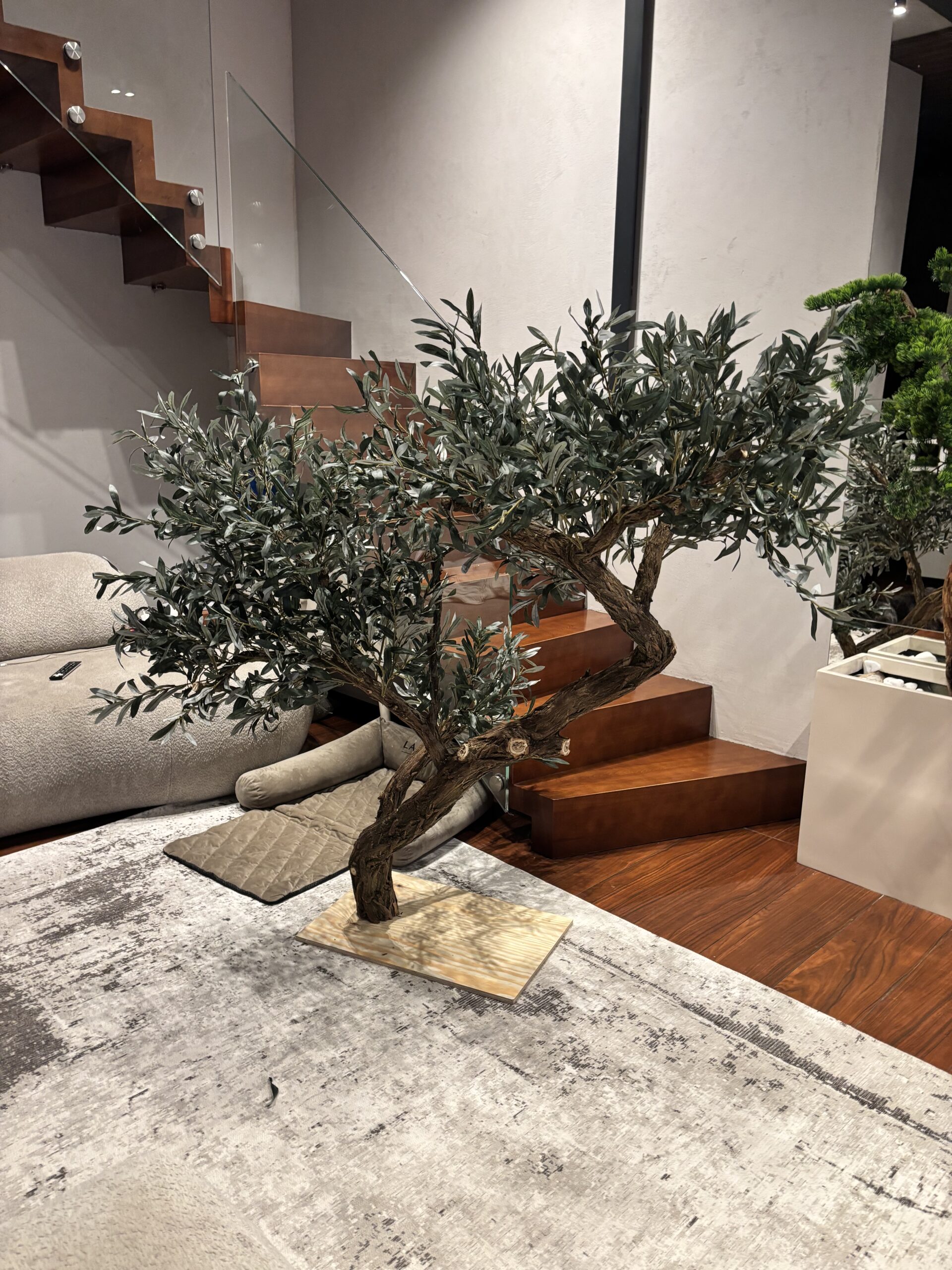 Oliwka bonsai 140cm wysokości i 110cm szerokości na naturalnym pniu.